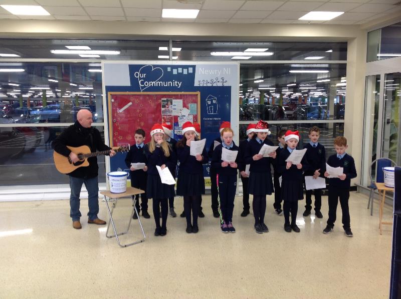 The P6/7 Class were invited to sing in Tesco to raise money for The Hospice